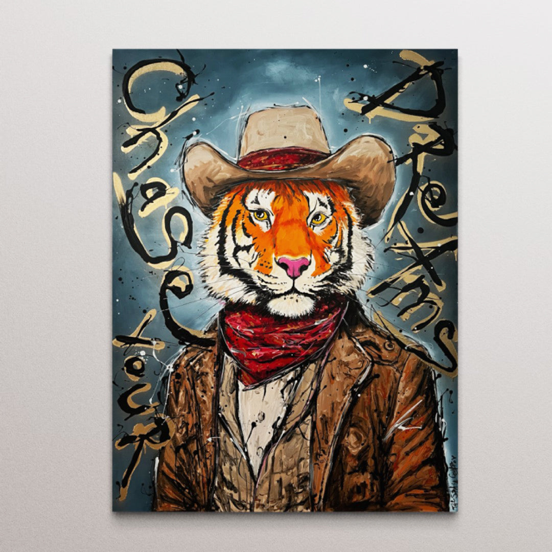 To keep shipping safe, larger artworks are sent rolled in a tube. You’ll need a staple gun and drill to reattach the canvas to the frame. If you prefer, a local framer can do this for you quickly and easily.Â