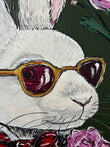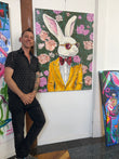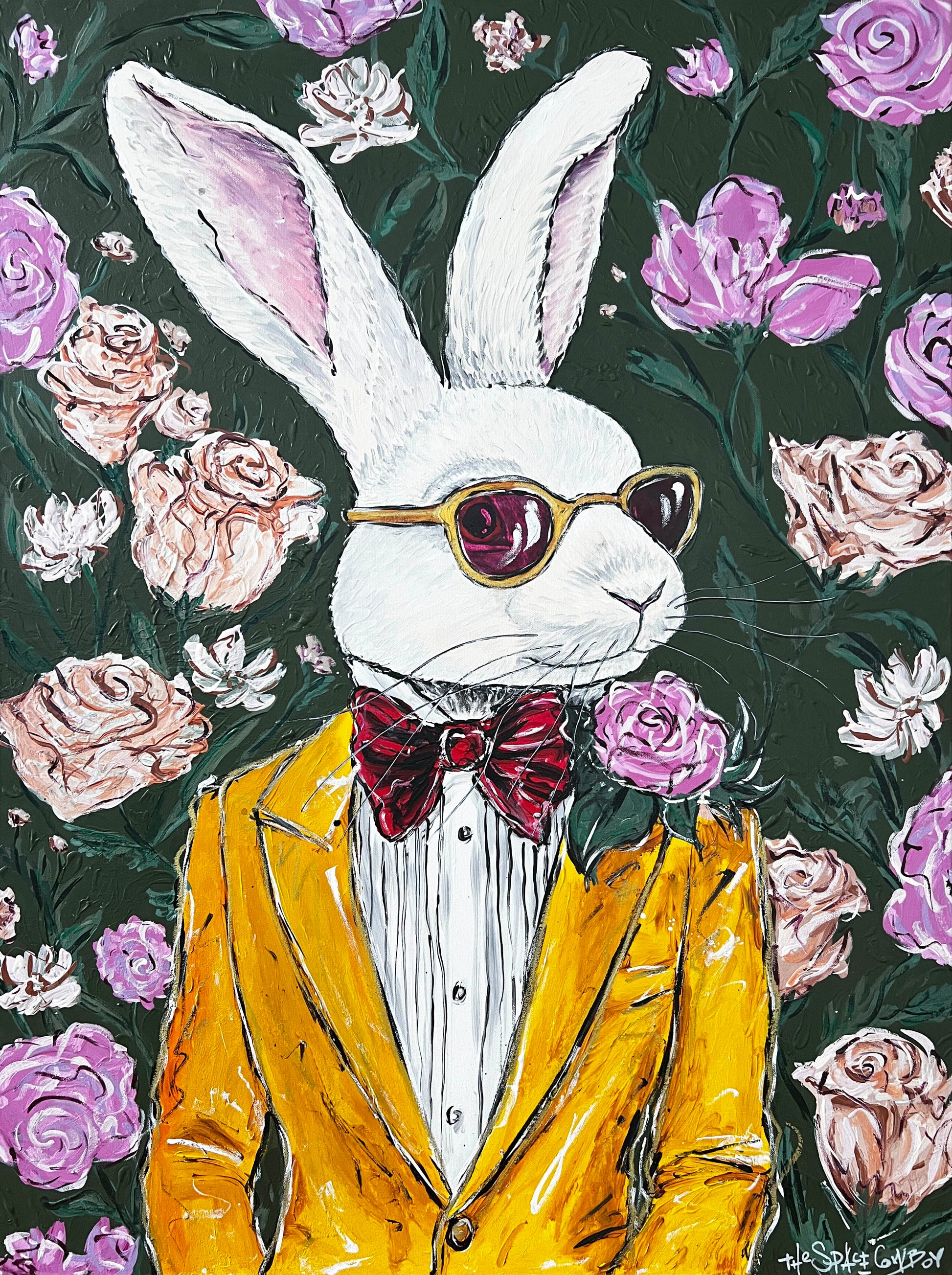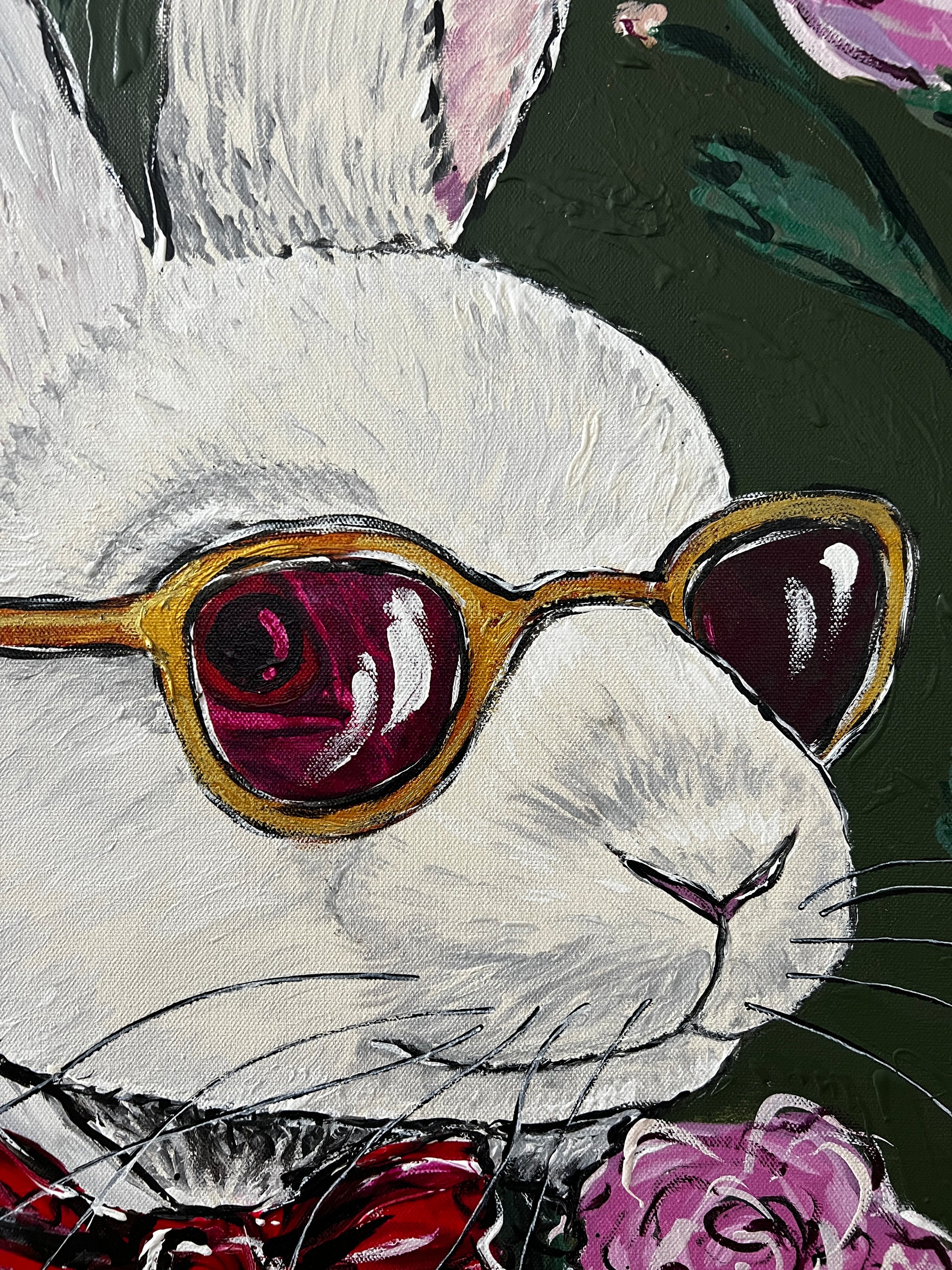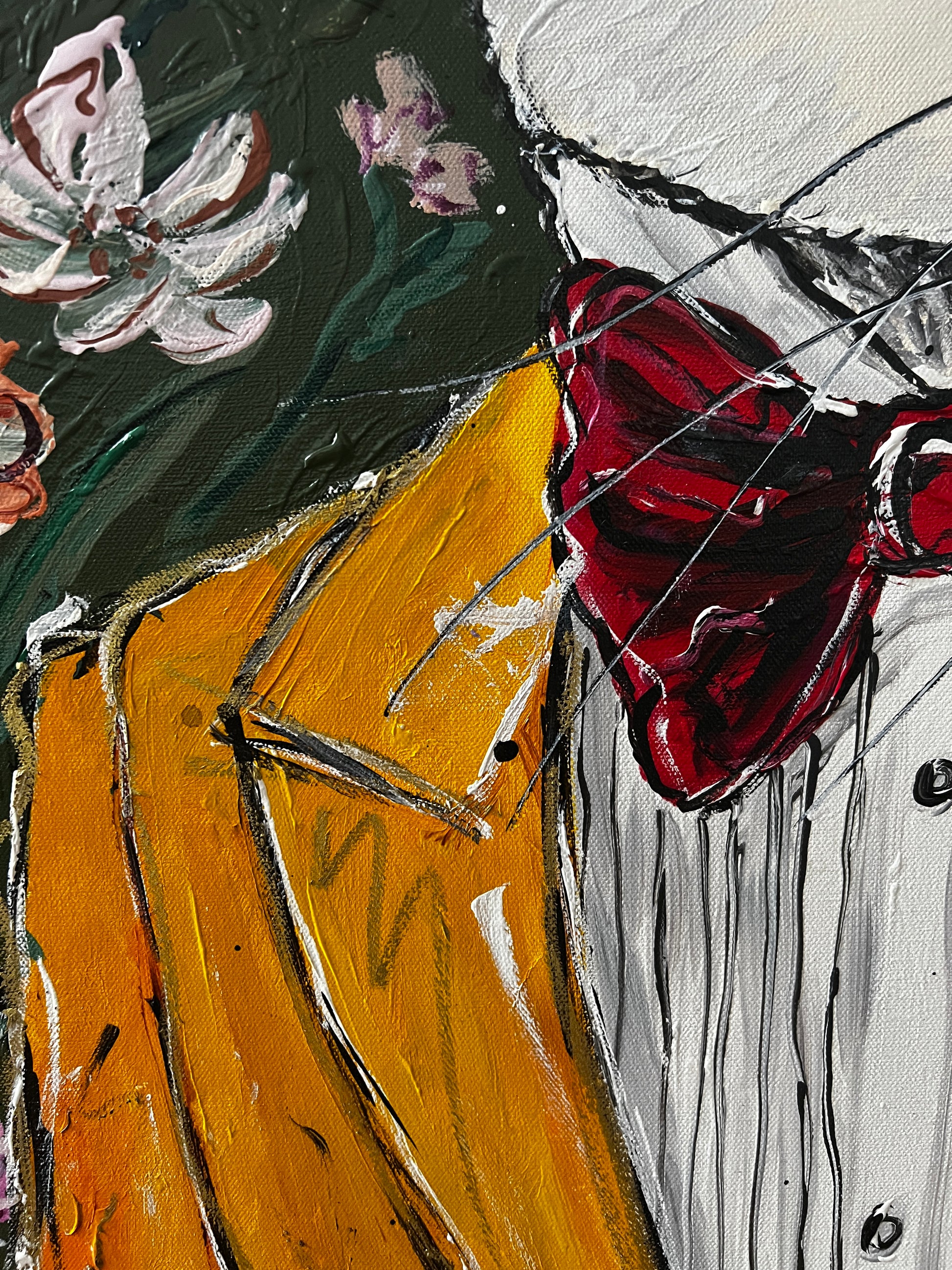 Acrylic paint, paint pen, and spray paint on gallery wrapped canvas. Ready to hang.