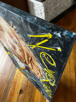 To keep shipping safe, larger artworks are sent rolled in a tube. You’ll need a staple gun and drill to reattach the canvas to the frame. If you prefer, a local framer can do this for you quickly and easily.Â