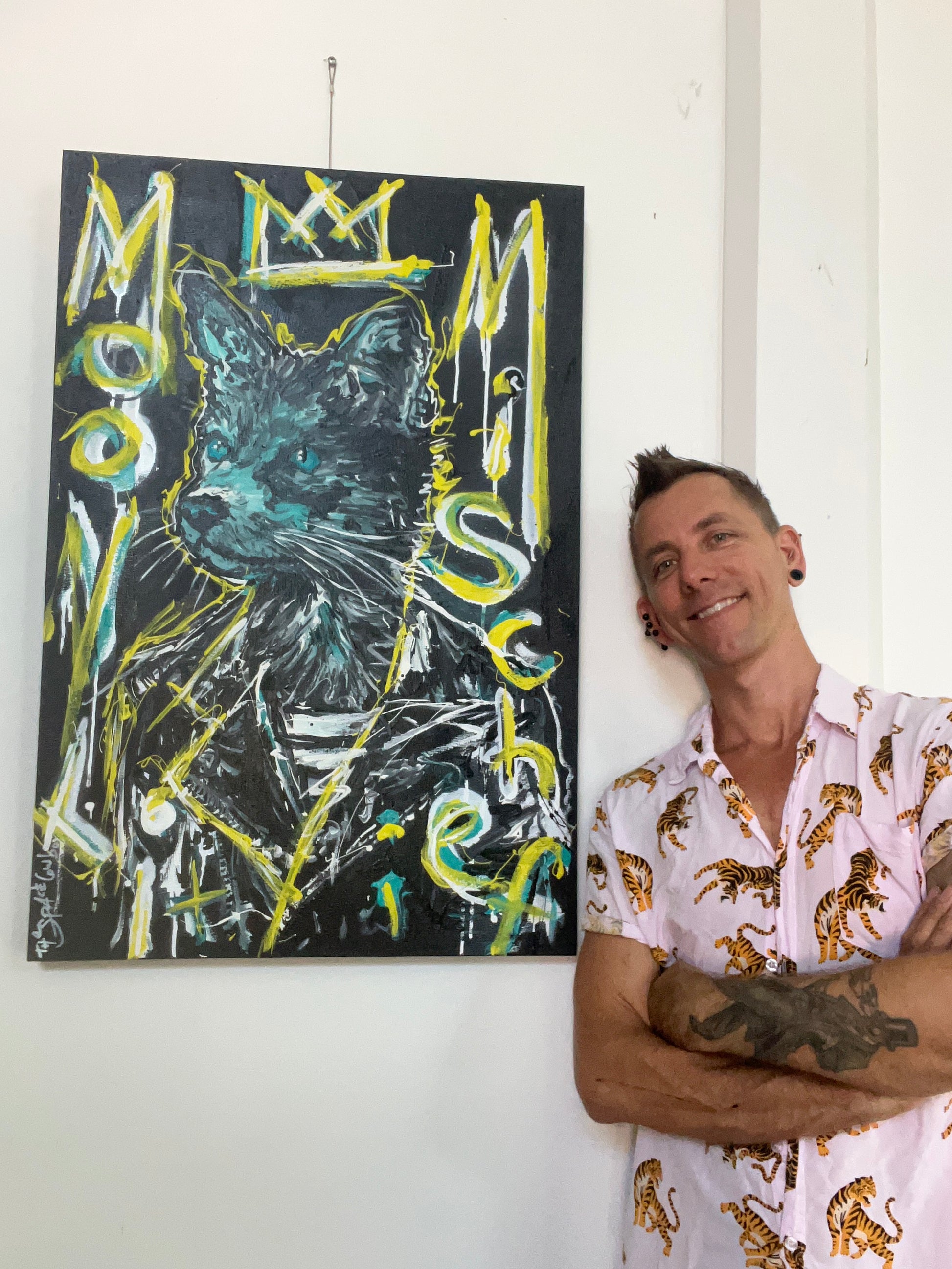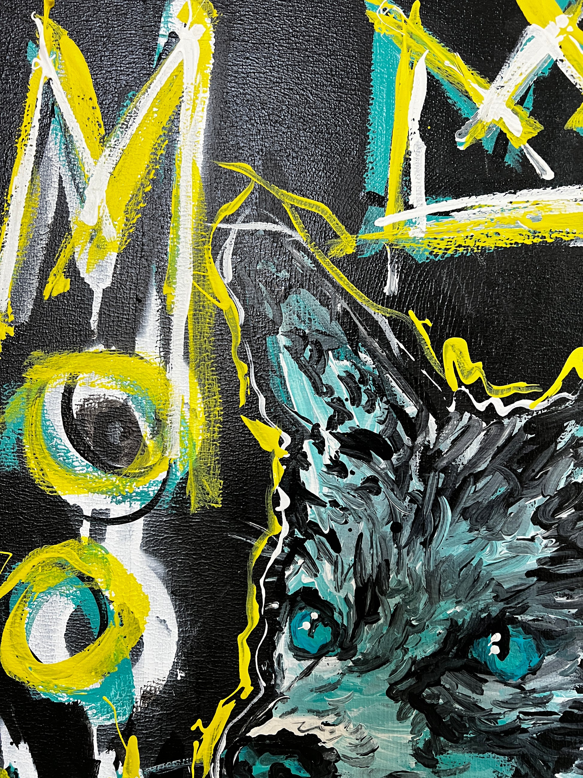 Acrylic Paint, spray paint and paint pen on gallery wrapped canvas ready to hang.