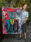 To keep shipping safe, larger artworks are sent rolled in a tube. You’ll need a staple gun and drill to reattach the canvas to the frame. If you prefer, a local framer can do this for you quickly and easily.Â
