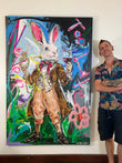 This artwork is ready to hang, but for safe postage it will be sent rolled in a tube along with the frame. The frame can be easily assembled in minutes using a staple gun, or by your local framer. Everything needed to display the finished piece on your wall will be provided, including clear instructions.