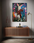 To keep shipping safe, larger artworks are sent rolled in a tube. You’ll need a staple gun and drill to reattach the canvas to the frame. If you prefer, a local framer can do this for you quickly and easily.Â