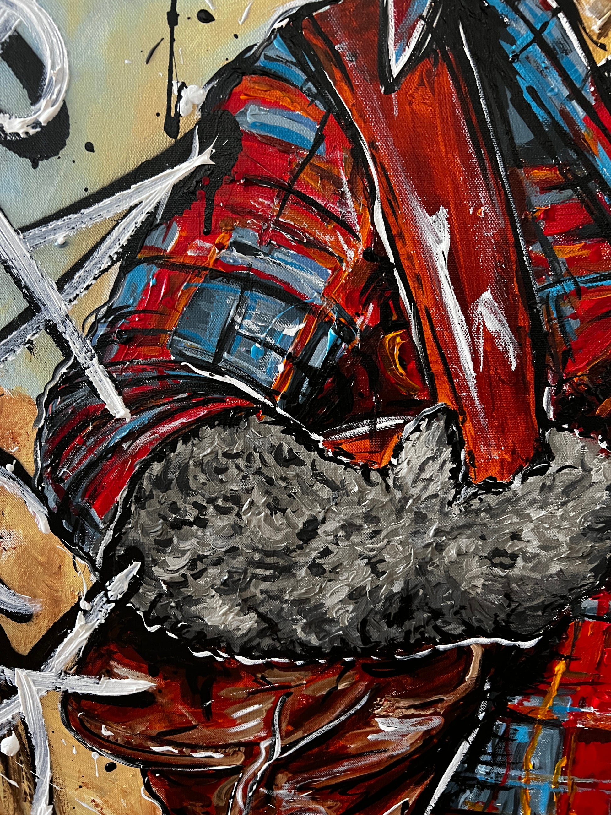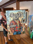 To keep shipping safe, larger artworks are sent rolled in a tube. You’ll need a staple gun and drill to reattach the canvas to the frame. If you prefer, a local framer can do this for you quickly and easily.Â